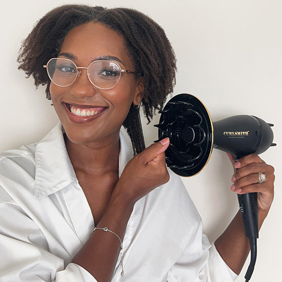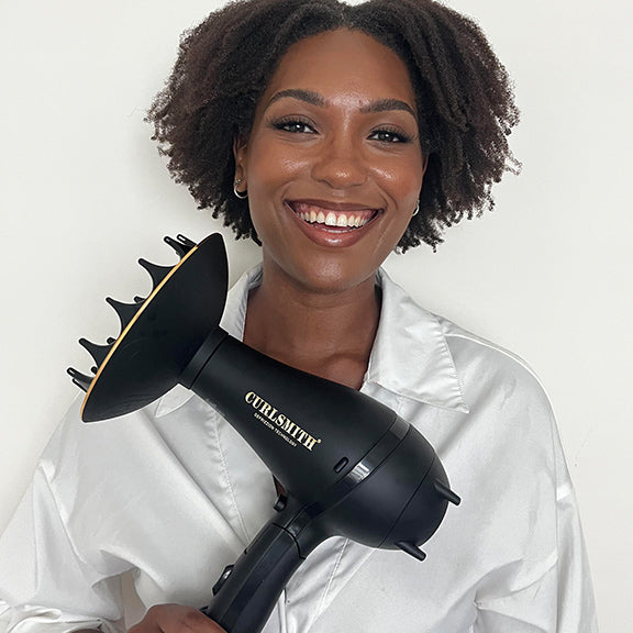 Features | Large 6” diffuser reduces drying time. With Ionising DEFRIZZION™ Technology, our dryer, helps reduce frizz. Unique 360º airflow diffuser wraps air around the curl for even drying. Sustained cool setting for greater temperature control & ease of use with minimal heat damage. 6Ft power cord for easier styling. Lightweight and compact design with folded handle for easy storage and packing. |